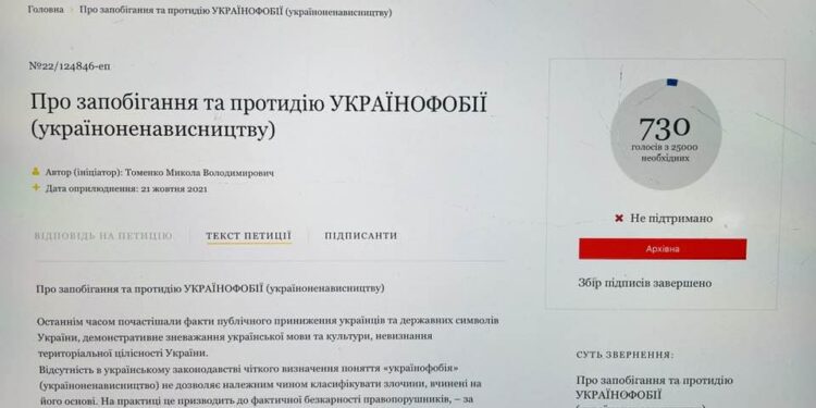 Бо у воюючій Україні досі ВІДСУТНІ норми адміністративної та кримінальної відповідальності за УКРАЇНОФОБІЮ (україноненависництво)! Напередодні війни моя петиція про необхідність правового унормування проблеми запобігання і протидії українофобії набрала аж 730 голосів. Бо тоді було не до того: більшість українського народу разом із владою великим будівництвом займалися і шашлики смажили.